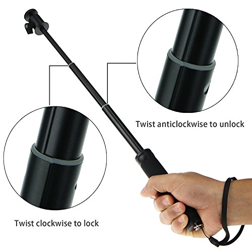 - Extendable Monopod make you to get better angles for wide shots,the lenght can be adjusted as your like(clockwise or anti-clockwise to fasten the monopod)